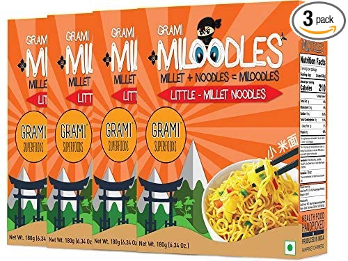 Grami Superfoods Foods Organic Little Millet Noodles Healthy Combo 3 Packs -Made of Whole Wheat Flour, Salt, Edible Calcium, Cluster Beans Powder, Starches Vegetarian Grocery Items -540g