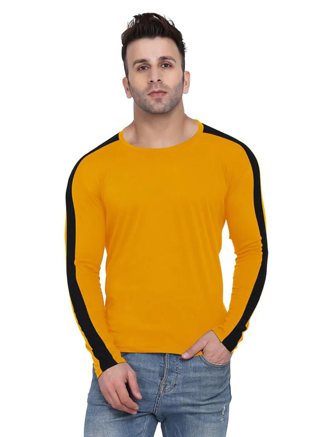 Men’s Cotton Spandex Sleeve Striped Yellow Full Sleeve T-shirt
